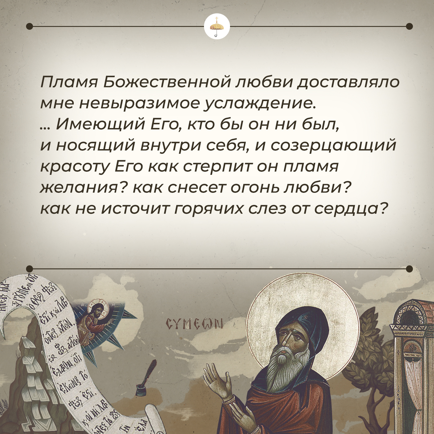 «Имеющий Его, кто бы он ни был, и носящий внутри себя, и созерцающий красоту Его как стерпит он пламя желания? как снесет огонь любви? как не источит горячих слез от сердца? как поведает чудеса эти? как исчислит то, что совершается в нем?» (Гимн 1)