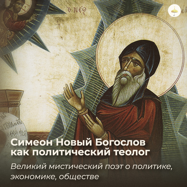 1004 года назад, 12 (25) марта 1022 года, отошел ко Господу преподобный Симеон Новый Богослов, один из величайших учителей духовной жизни (его творения входят в Добротолюбие, т. е. авторитетны в высочайшей степени), гениальный — если это слово здесь уместно — мистический поэт. Как мистик, поэт, учитель духовной жизни он известен и почитаем; в память о нем мы решили попытаться сделать подступ (конечно, самый предварительный, дальний и, вполне вероятно, неудачный) к тому пласту его наследия, что находится в тени: к его политической и даже скорее социально-экономической теологии.