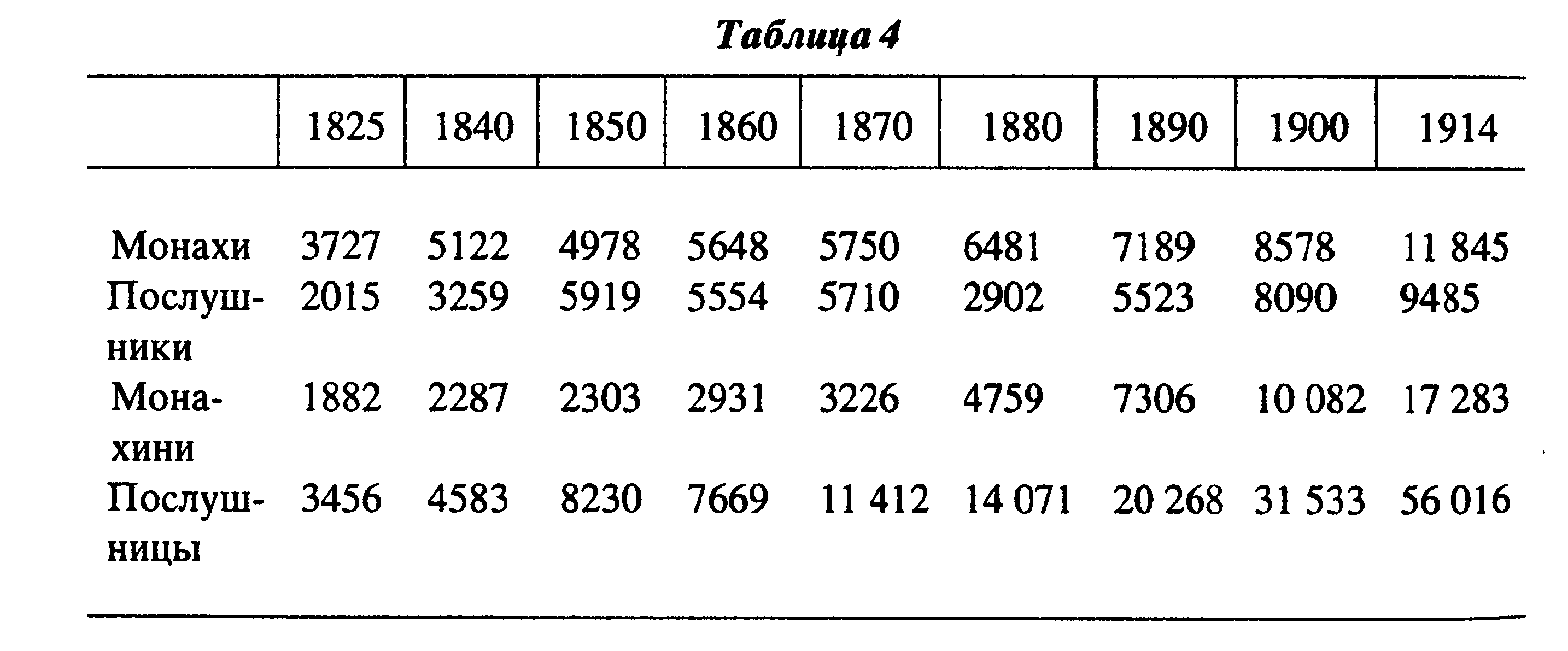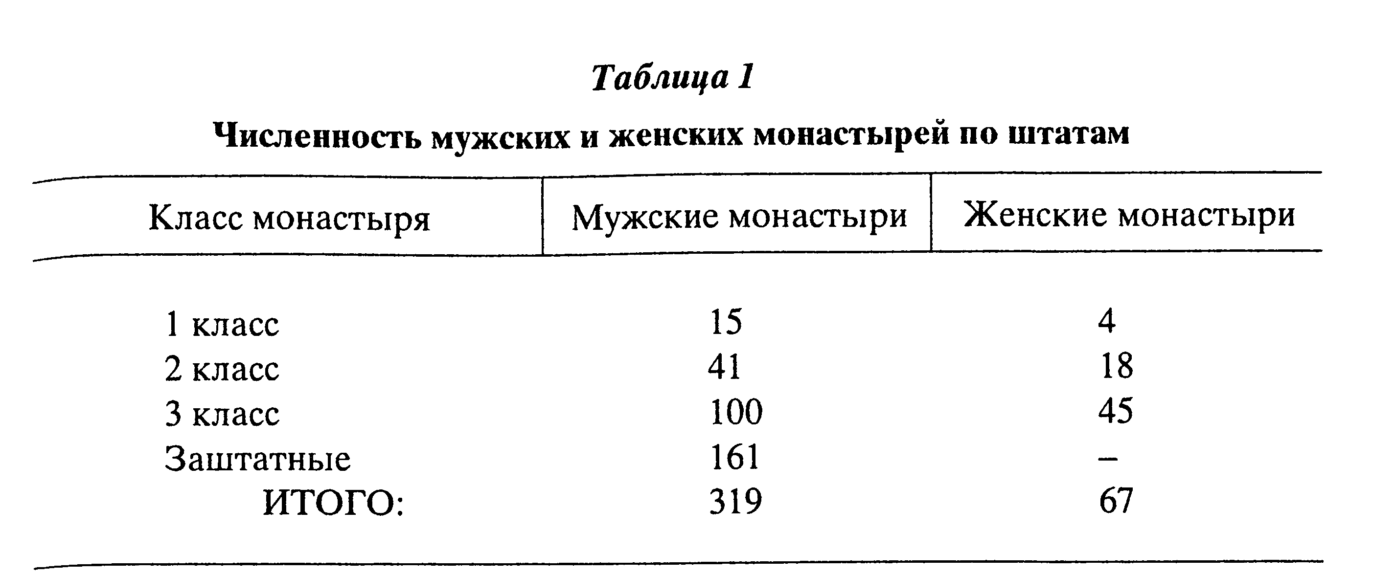 XIX век и начало ХХ–го были благоприятным периодом в жизни русских монастырей. За это время количество монастырей и общин более чем удвоилось, численность же монашествующих (не считая послушников) увеличилась более, чем в пять раз. В жизни России монастыри играли важную роль, поддерживая основы нравственности и благочестия. Всероссийские религиозные центры (Троице–Сергиева и Киево–Печерская лавры, Оптина и Саровская пустыни и др.) играли большую роль в духовном сплочении русской нации и других единоверных с ней народов.