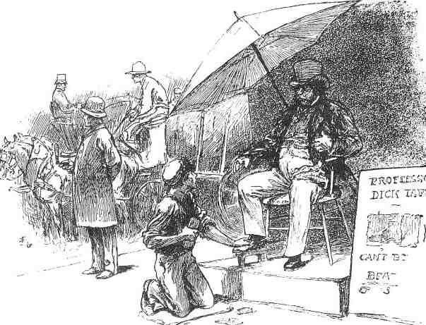 Седрик устроился на высоком табурете, на котором он обычно сидел, сдвинул шапку на затылок, а руки, в подражание мистеру Хоббсу, сунул в карманы.