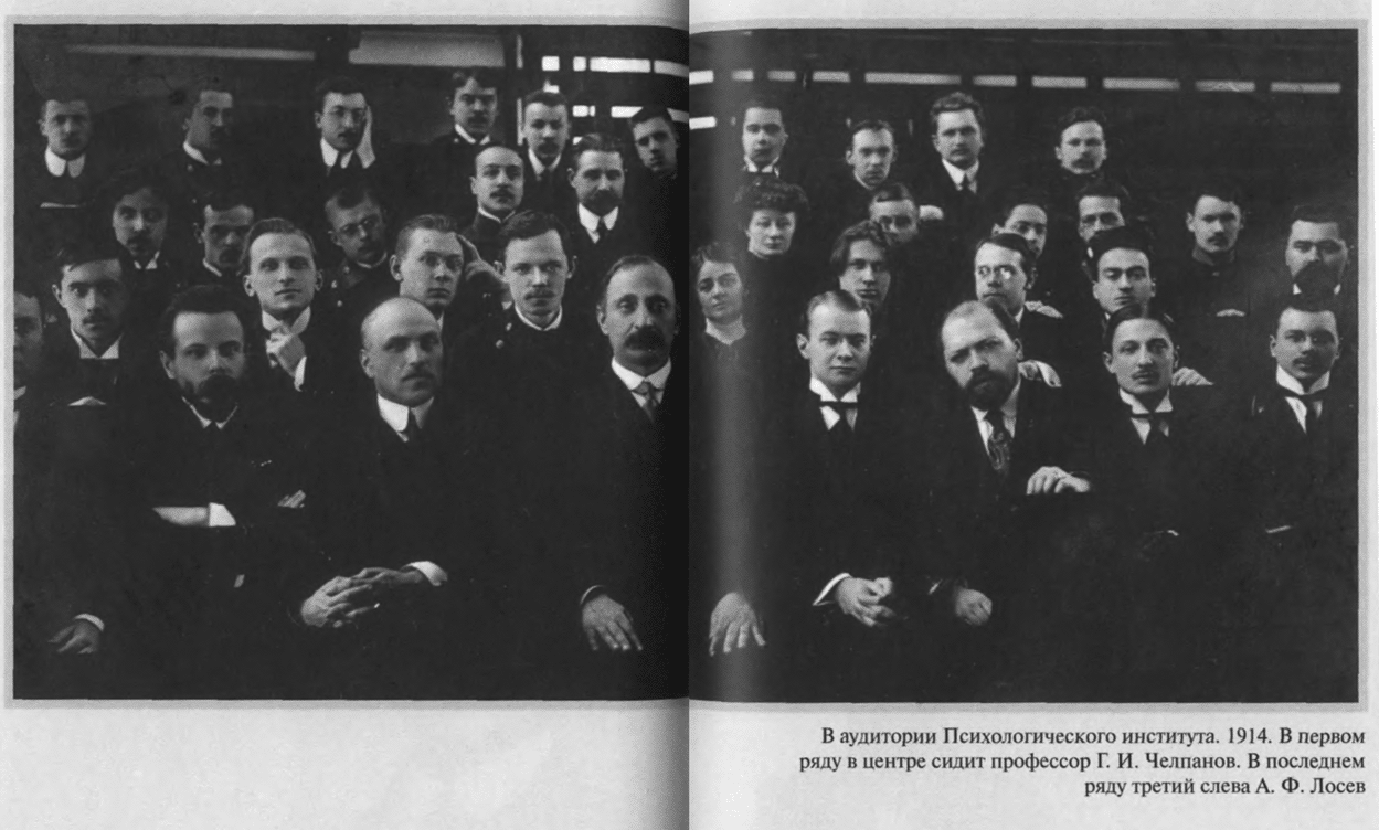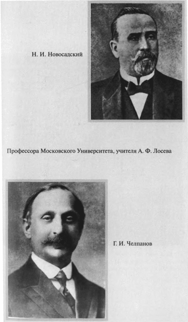 После революции, вспоминал Лосев, постепенно «распались старые философские общества, в 1921 году было отменено преподавание древних языков <…> Наши специалисты–античники все разошлись, кто в экономику, кто просто начал служить где–нибудь, ну а мне повезло. Я был действительным членом Государственной Академии Художественных наук. А кроме того, я же имею музыкальное образование, я же скрипач, учился в музыкальной школе во время гимназии, всегда имел большой интерес к музыке, об этом писал и говорил, делал доклады, и около 20–го года я уже был в Москве настолько известен как музыковед и искусствовед, что стал действительным членом Государственного института музыкальной науки, а Консерватория пригласила меня преподавать эстетику»[9].