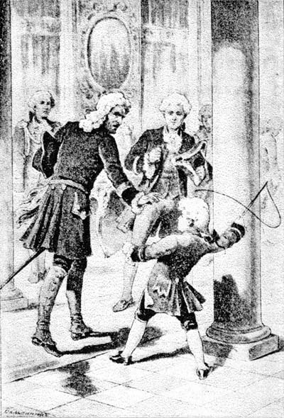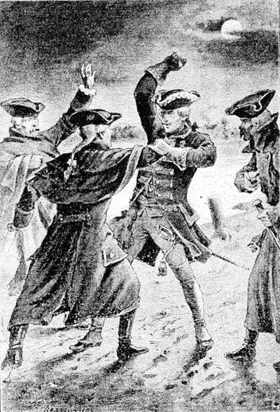Нападение было совершено столь внезапно, что офицер не успел даже выхватить шпагу. Трое неизвестных бросились к нему с двух сторон. Один крепко схватил его за грудь, двое других — за руки.
