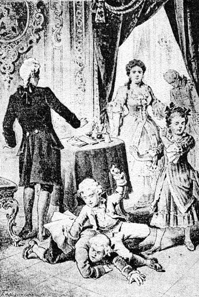 Андрюша, видя эту сцену, с громким плачем бросился к родителям, не понимая, в чем дело, — о чем тоскует матушка и отец.