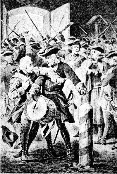 Знакомые ему три человека в черных треуголках с целой ватагой приспешников бросились к нему, повалили на пол и, связав по рукам и ногам, с бранью и проклятиями поволокли его с собою…