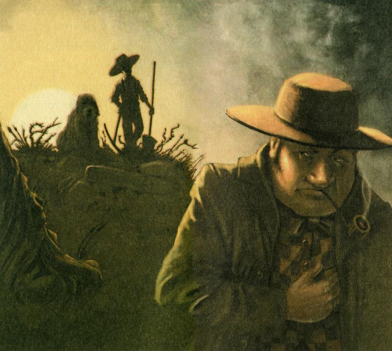 Они нашли Фатта стоящим на пороге и жующим кусок пирога. За спиной у него миссис Фатт снимала шкуру с медведя, которого он только что принес домой на плечах.