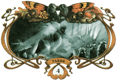 — Это мы еще посмотрим, — сказал Фатт. Он надел Каменное сердце на кожаный шнурок, повесил его на шею и направился посмотреть на свое отражение в пруду возле жилища Фама. Но вместо своего отражения он увидел страшного темнолицего призрака, который глядел прямо на него. Этот призрак не был уродливым, он был всего лишь странным, с глазами того медно-красного цвета, который бывает у неба перед грозой. Волосы призрака были окрашены в розовый, синий и ослепительно огненный цвет; они бешеными огненными языками вились и переплетались вокруг его лба. Фатт отшатнулся от отражения и, подняв голову, увидел в небе страшную фигуру, которая и отбрасывала свое отражение в пруд.