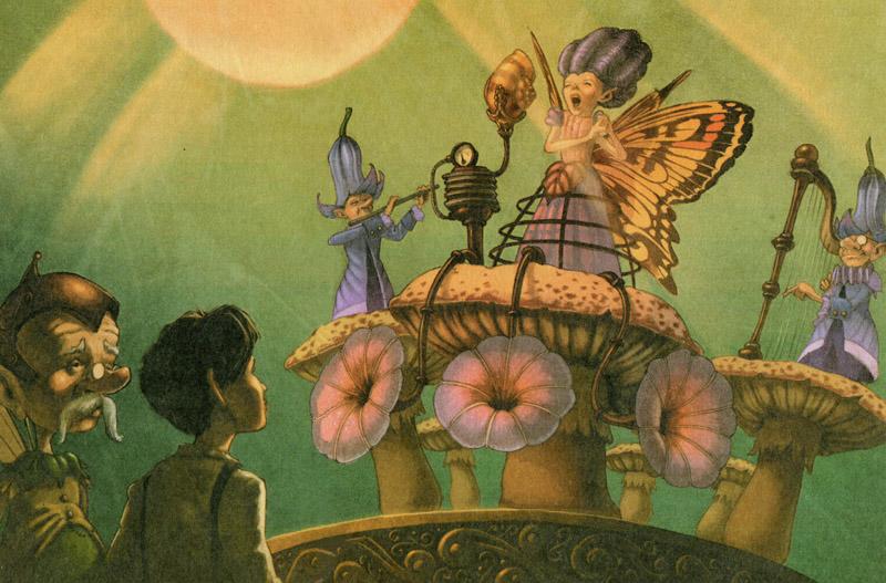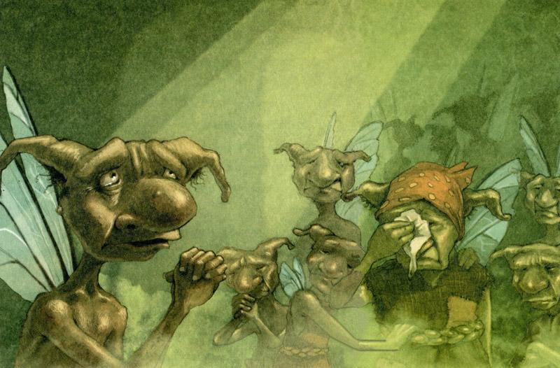 Затем прибыли влиятельные звери и конечно же барсук. Едва ли кто-то был заинтересован в этой церемонии больше, чем он. Увидев Каменное сердце, он весь ощетинился. Он бы сам с огромным удовольствием растолок его в пыль. Также пришли Шип, Флип и Чам. Затем прибыли полки Джеки-Жаб, включая Болотного Скакуна с женой и жениной племянницей, Огненного Селезня с женой и многих других важных членов клана. Следующими появились Король Волшебной Страны с Королевой и королевской семьей, а также с грелкой, Лорд-канцлером и другими высокопоставленными лицами королевского двора, включая конечно же Де Квинси, который щеголял новенькими буквами П.М. на своих фалдах, сказочника Ганса Христиана Андерсена, вестников, хор и оркестр. За ними следовало десять тысяч фей, потому что Король очень любил пышные зрелища и ему нравилось, когда на них собиралась большая толпа.