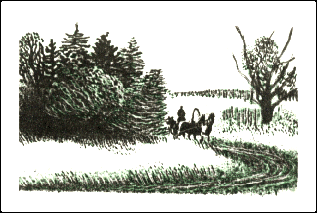 Лес расстилался на противоположном деревни берегу реки. Дети перебежали мост, перекинутый против церкви, и с веселым смехом разбрелись по густой темной чаще, едва освещенной косыми лучами солнца. Черники в лесу оказалось много, но кузовки наполнялись довольно медленно. Во-первых, каждому хотелось отложить часть — и значительную часть — ягод в рот; во-вторых, в лесу, кроме ягод, было много удовольствий. Мальчики влезали на верхушки деревьев, девочки прятались в кусты, все собирали еловые шишки и бросали их друг в друга; кто-нибудь открывал белочку, притаившуюся в ветвях; нужно было спугнуть ее, чтобы полюбоваться ее ловкими прыжками, и потом проследить, куда она денется; другой находил ежа, свернувшегося колючим клубком в траве, — его также нельзя было оставить без внимания. А птичьи гнезда! Как же не исследовать, не найдется ли в котором-нибудь из них запоздалых яичек или неоперившихся птенцов? Все это отнимало немало времени, и солнце поднялось уже довольно высоко, когда один из старших мальчиков заметил, что пора по домам, а то, пожалуй, тятька приколотит: зачем баловался так долго, дела не делал. Большинство детей согласилось со справедливостью этого замечания, и вся ватага направилась к выходу из леса. Когда они подошли к дороге, пересекавшей лес, мимо них промчалась на четверке красивых лошадей коляска, в которой сидело семейство одного из соседских помещиков.