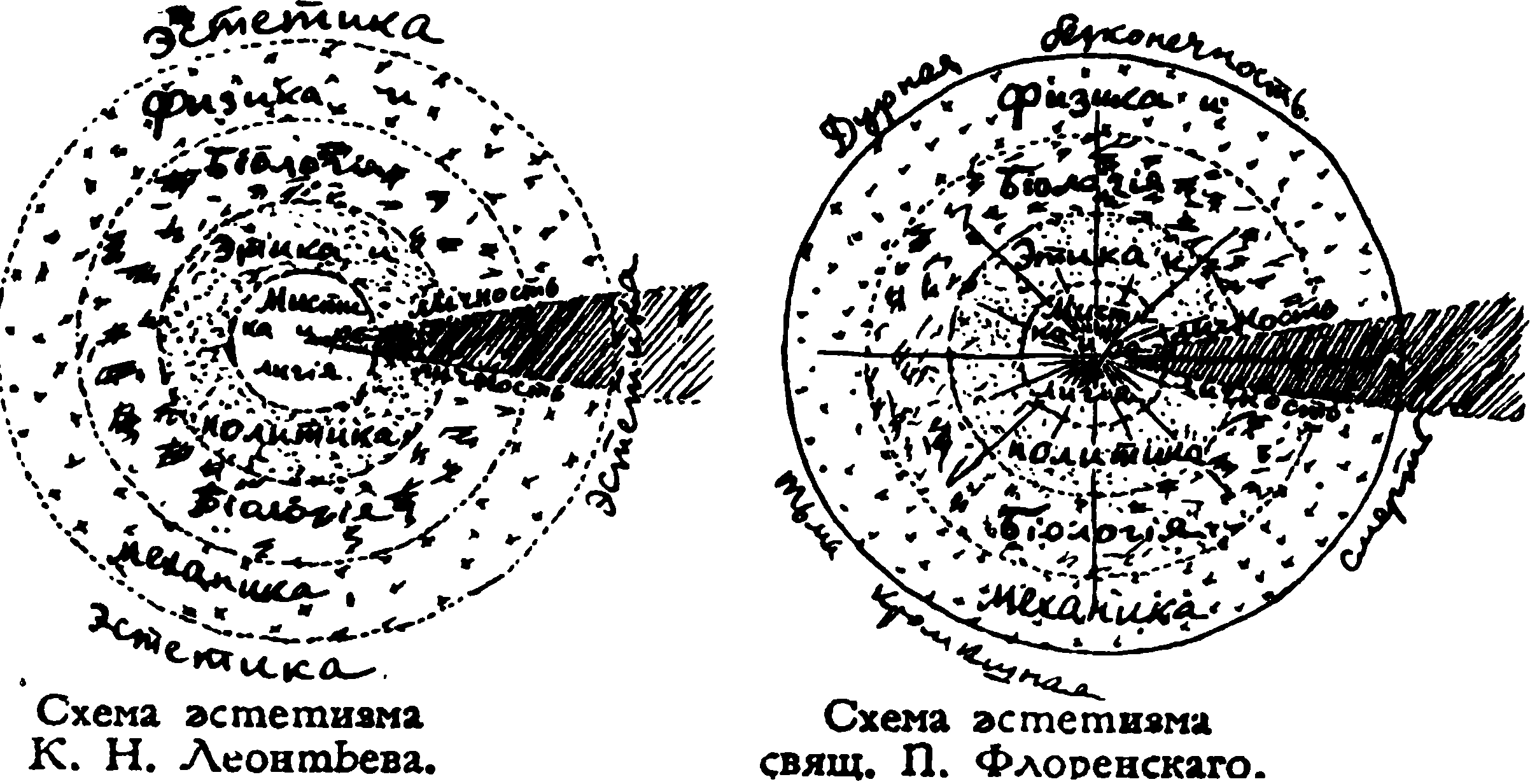 Какие же духовные переживания, какой духовный опыт лег в основу теодицеи Флоренского? В письме к В. А. Кожевникову 27 июля 1912 г. Флоренский писал по поводу «Столпа»: «Дорогой и глубокоуважаемый Владимир Александрович! <…> Те мужественные звуки, которых Вам, — а мне самому еще более, нежели Вам, — хотелось бы слышать от меня, звучат пока лишь в тайниках сердца моего, и ни субъективно, по ступени моего развития, ни объективно, по задачам, мною ставимым, им звучать пока невозможно. Κάθαρσις[1073], Μάθησις[1074], Πράξις[1075]! Писать можно о том, что пережито, а я лишь подхожу (—да и подойду ли, — это вопрос —) к Πράξις. Мои научные статьи, из коих большая часть не напечатана или даже слегка набросана, «тетради» мои и т. д., <1 нрзбр.> математическая работа и математические заметки — это все, как я мысленно называл всегда, — та καθαρτικά, — расчистка души моей от современности. «Поэма» (написанная)[1076]— завершение катартического периода. «Столп», разрабатываемый, хотя тема его явилась около 9—10 лет тому назад — μάθησις первой половины, т. е. теодицея (только!), и все иные темы из него сознательно исключены. Вот почему и лирика «Столпа» опять не то, чего вы хотите, — нечто хрупкое и интимно–личное, уединенное. Предполагаемая и отчасти набросанная 2–я часть «Столпа», подинымназванием, — 2–я половина μάθησις, т. е. антроподицея, о тайнах и таинствах, о благодати и боговоплощении во всех видах и образах. В ней слегка намечается πράξις, но я надеюсь, что художественная сторона, «фон», сознательно антиципирующий дальнейшее, уже не будет ни свирелью, ни жалобою покинутого (потому–то и возникает проблема Теодицеи; иначе оставался бы праздник обручения и пастораль), а «драмой», в современном смысле слова, и намеком на трагедию. Мне чудятся в дальнейшем πράξις и тоны трагедии — мистерии. Но этотолькочудится, и я еще почти не представляю, как это будет и будет ли {стр. 829} как–нибудь. Надо очень, очень расти, чтобы превзойти μάθησις, и очень много страдать, чтобы дорасти до мистерии, до πράξις. Ведь пока единственный зародыш у меня этого —цикл переживаний, благодаря которым и из которых сложилась моя семейная жизнь»[1077].