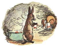 Все спросили у Иа, как он поживает, и он сказал, что никак, не о чём говорить, и тогда все сели; и как только все уселись, Кролик снова встал.