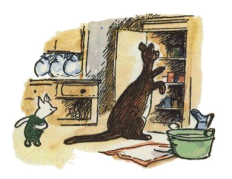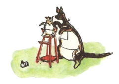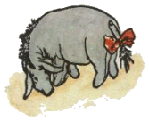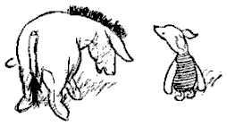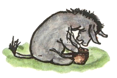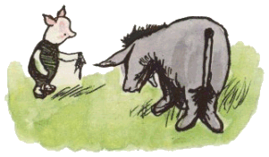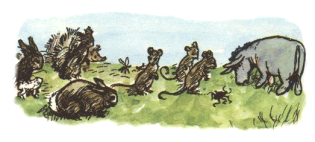 Все они сказали: «Здравствуй», и вдруг всем стало как-то грустно и не по себе — ведь получалось, что они пришли прощаться, а им очень-очень не хотелось об этом думать. Они беспомощно сбились в кучу, ожидая, чтобы заговорил кто-нибудь другой, и только подталкивали друг друга, шепча: «Ну, давай ты», и мало-помалу вперёд вытеснили Иа, а все остальные столпились за ним.