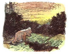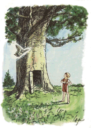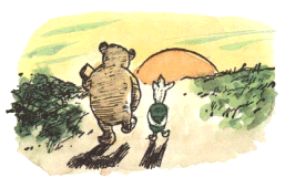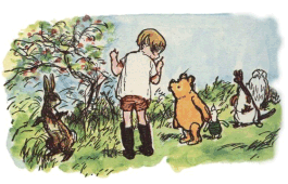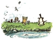 — Это очень трогательно, — сказал Кристофер Робин, складывая бумажку и убирая её в карман. — Пойдём, Пух. — И он быстро зашагал по дороге.