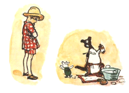 Винни-Пух первым делом подошёл к одной знакомой луже и как следует вывалялся в грязи, чтобы стать совсем-совсем чёрным, как настоящая тучка.