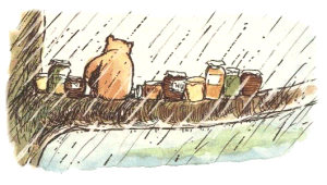 — Может, заметят, а может, и нет, — сказал Винни-Пух. — Разве знаешь, что пчёлам в голову придёт? — Он подумал минутку и добавил: — Я притворюсь, как будто я маленькая чёрная тучка. Тогда они не догадаются!