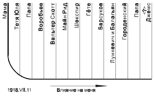 Валя бегала за Мих[аилом] Никол[аевичем] Городенским и требовала: «Учитель, застегните панталоны».