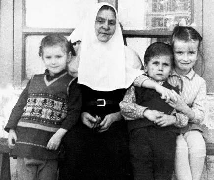 Мать о. Павла, Татьяна Никаноровна со своими внуками, старшая Машенька и двойняшки Аня с Ваней, 1967 год