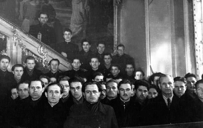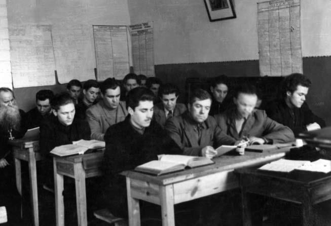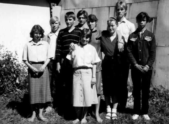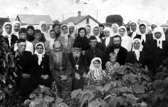 Старец Севастьян со своей общиной, г. Караганда, 1950 год. Слева — Павел Адельгейм 12-ти лет