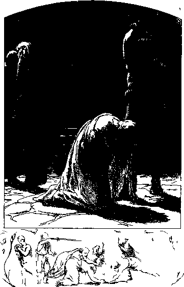 Фабиола подала знак; невольница, сопровождавшая ее, подозвала четырех рабов, которые несли закрытые носилки. Они приблизились к телу Агнии, но Фабиола отстранила их, подозвала Сиру, стала с ней на колени и, рыдая, подняла тело. Они положили его на ковры и на подушки носилок и опять покрыли богатою мантиею. Рабы подняли носилки и понесли тело в дом родных Агнии. За телом шли плачущие Сира и Фабиола. По дороге к ним присоединилась рыдавшая девочка.