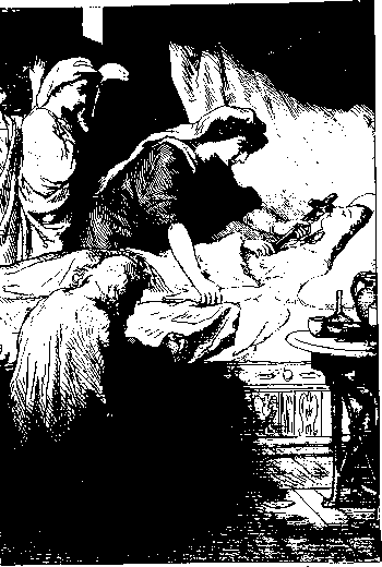 На вопль Фабиолы со всех концов дома сбежались невольницы. Фабиола остановила их у дверей и впустила только Евфросинию и Граю. Они подняли Сиру и отнесли ее на постель Фабиолы, в ее спальню. Через несколько минут Сира открыла глаза. Фабиола послала за врачом, жившим в доме Агнии. То был христианский священник Дионисий.