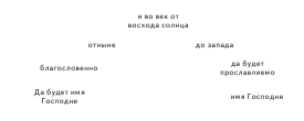 Если эти стихи писать так, как это соответствует искусному хиастическому построению в еврейском, то станет оптически ясно, как слава Божия простирается вдали времени и пространства. Каксвод неба простирается над землей, объемлет жизненное пространство всей твари, так стоит над всем миром и народами имя JHWH, которое неустанно благословляют Его рабы»[112].