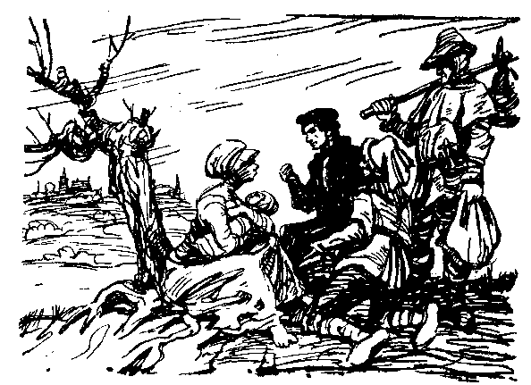 Томас не из тех, кто может спокойно относиться к бедам народа. Но что же делать? Одни крестьяне отвечают, что скоро всевышний заставит господ уменьшить повинности и снизить платежи: нельзя у бедного человека отбирать почти все, он должен иметь возможность прокормить себя и своих детей. Другие, оглядываясь — нет ли поблизости подозрительных, шепотом произносят опасное и полное надежды слово: «Башмак!»