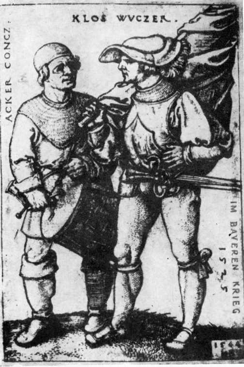 Рыцари носили сапоги со шпорами, крестьяне — башмаки, завязанные длинным ремнем. В середине XV столетия князья Южной Германии, желая во что бы то ни стало задушить непокорных швейцарцев и одновременно приструнить Собственных мужиков и и горожан, призвали на помощь иностранных наемников. Конные банды залили страну кровью. Дикие грабежи опустошили села и города. Сеньоры были заодно с грабителями. Тогда поднялся народ. Башмак, водруженный на шест, стал знаменем борьбы с наемниками и господами. Шайки чужеземцев были изгнаны.