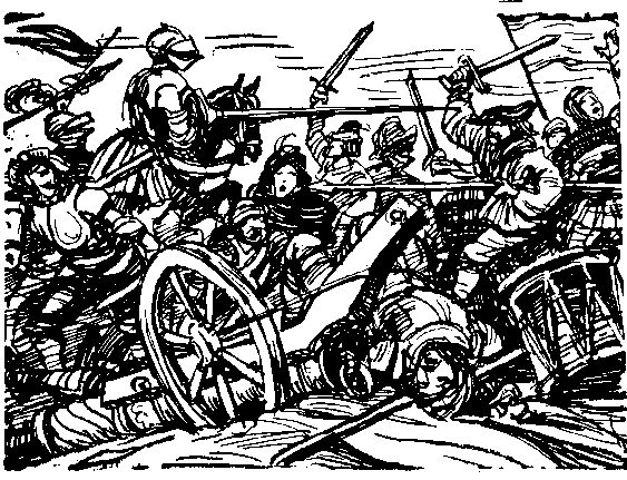Виттенбергские ученые ехали на двух обыкновенных повозках. На первой среди превеликой кучи фолиантов сидел маленький черноволосый Карлштадт. Лютер и Меланхтон были на второй. Их сопровождала большая толпа, человек двести, студентов, прихвативших с собой на всякий случай пики и алебарды. На повороте у передней повозки внезапно сломалось колесо. Карлштадт со всего размаху полетел на землю. Улица огласилась хохотом. Студенты помогли Карлштадту встать. Он упал очень неудачно и расшиб руки. В пыли валялись огромные книги.
