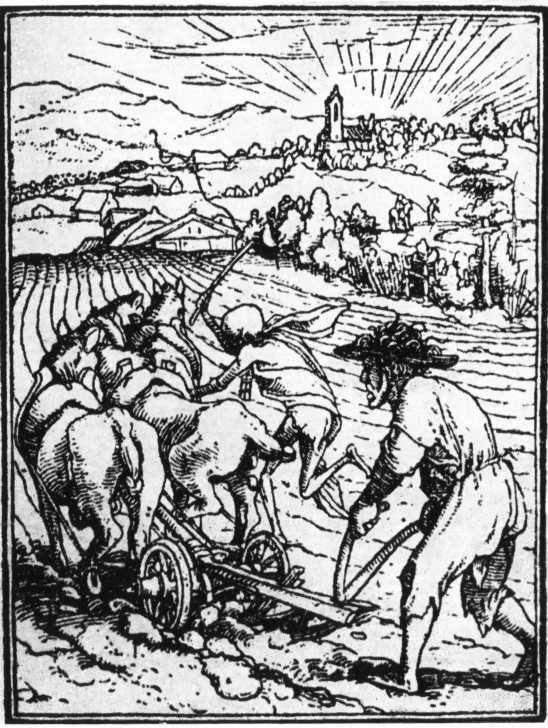 Склонившись над доской, Альбрехт Дюрер резал свои гравюры на фантастические темы Апокалипсиса, а перед глазами стояла Немецкая земля с ее бедой и тревогой, нуждой и печалью, растерзанная родина, край страданий и кривды — воздетые в ужасе руки женщин, раскормленные монахи, палачи, гремящие латами архангелы-ландскнехты, схватки, казни, битвы и сама Смерть, хищная, как тот разбойник-рыцарь, что грабит мужиков на дороге…