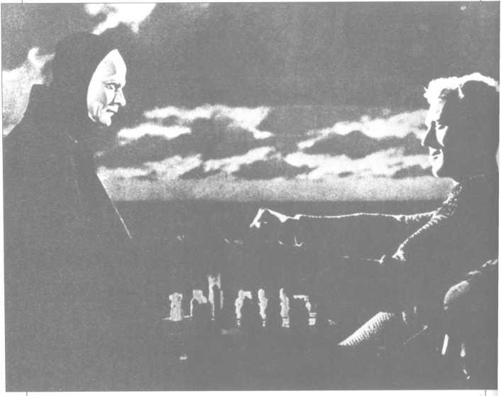 «Роспись по дереву» в конце концов превратилась в «Седьмую печать» — неровный, но дорогой моему сердцу фильм, ибо делался он в наипримитивнейших условиях, зато с огромным жизнелюбием и желанием. В ночном лесу, где казнят Ведьму, за деревьями можно разглядеть окна многоэтажек Росунды. Процессия флагеллантов двигалась по участку, расчищавшемуся под строительство новой лаборатории. Эпизод танца Смерти под темными тучами снимался в бешеном темпе уже после того, как большинство артистов разошлось. Техников, электриков, одного гримера и двух дачников, совершенно не понимавших, что происходит, обрядили в костюмы приговоренных к смерти, установили «немую» камеру и успели заснять кадр до того, как разошлись тучи.