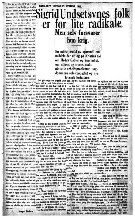 «Скандинавия и война» («Scandinavia and the war») — доклад Сигрмл Унсет для чтения в разных аудиториях в Нью-Йорке.