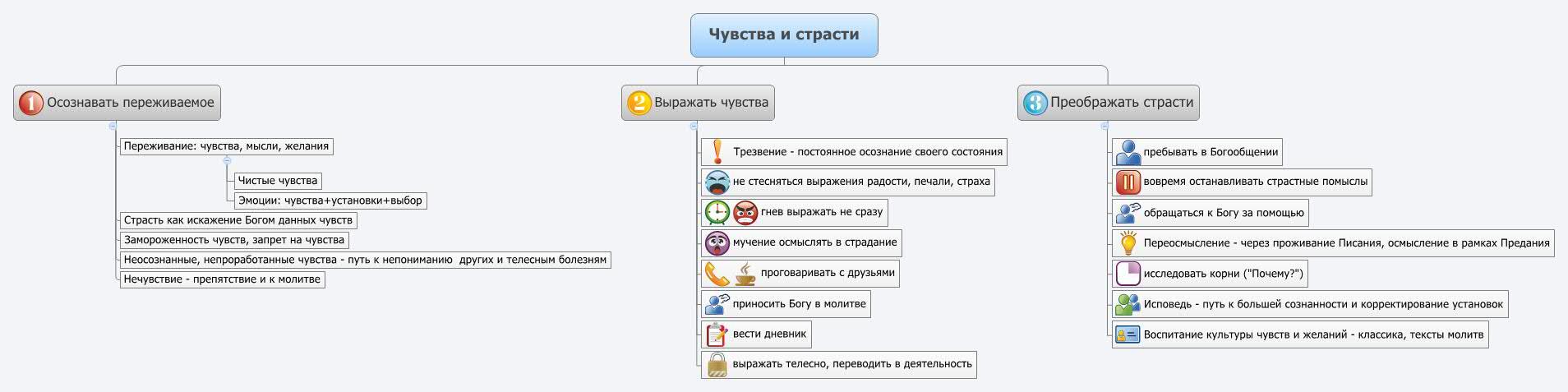 Но и в совместной работе очень важно различать чувства – свои и собеседников. Для этого рекомендуется вначале провести так называемую «Минуту тишины», когда каждый участник встречи делится теми чувствами, которые им владеют. Представим себе такую картину. Мы едем в отпуск и берем с собой альбомы с фотографиями. Вместо того чтобы получать удовольствие от новых впечатлений, мы перелистываем альбом, живем прошлым. Очевидно, что так быть не должно, необходимо оставить прошлое в прошлом и жить в настоящем. Добавим, что сильные чувства захватывают внутреннее внимание человека, и он не может эффективно сотрудничать. Проговаривая чувства, человек освобождается от них на время; кроме того, если есть нужда, об этом можно помолиться вместе. Примером такой практики может быть молитва «Иже херувимы», когда перед самым важным действием на Литургии, призыванием Духа на Дары, мы молимся о том, чтобы «всякое ныне отложить попечение». Рассказать о том, что переживается, важно и для тех, с кем предстоит работать: если они будут знать о некоторых сложностях, переживаемых коллегой, то не будут удивляться, что он сегодня реагирует как-то по-особенному. Доверяя свои чувства членам команды, мы свидетельствуем о дружбе, доверии.