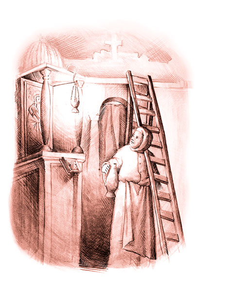 Никогда не забуду огромную стремянку, которую она на своих плечах переносила по храму, чтобы поправить или зажечь многочисленные лампады (в то время там ещё не было электрического освещения).