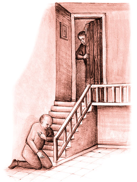 В этом разногласии и закончился наш обед. Я пошёл к себе, а он в больницу, чтобы осмотреть больного. Выходя из палаты (а коридор был забит носилками, к тому же, в этой больнице не было широких коридоров) и пытаясь перескочить от перил к перилам, он нечаянно опрокинул цветочный горшок на голову медбрата, который перевозил коляску этажом ниже, и оставил его потерявшим сознание. Сгорая от стыда, он вышел наружу, сел на ступеньки больницы и горько заплакал. Он стал думать: «Сегодня в полдень я хвалился тем, что никогда не позволял себе делать или предлагать аборт. Хвалился тем, что стоял рядом с больным до конца. Вот и ответ на сегодняшний разговор. Ах, отче, как же ты был прав!» И тогда он сказал себе: «Нет, пойду и признаюсь в своей ошибке, в своей невнимательности».