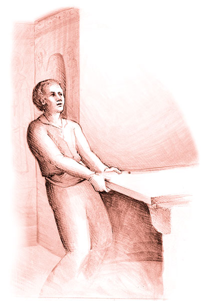 Тут он остановился и, скрестив руки, смотрел на небо…