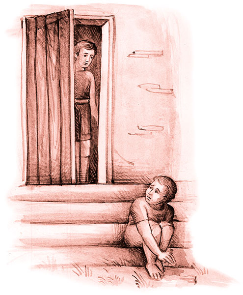 С трудом шагая, постукивая палочкой, спускалась она по каменной лестнице и потихоньку шла к дому Ксанфы.