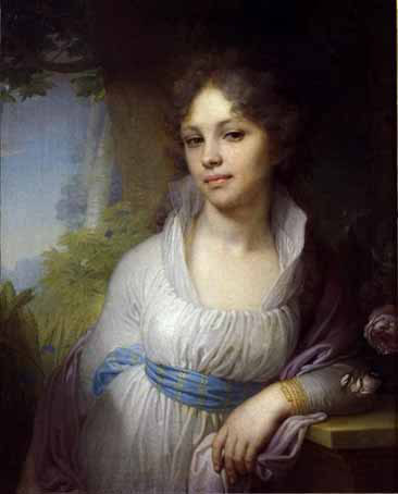 В портретах третьего выдающегося художника этого времени В.Л. Боровиковского (1757-1825 гг.) нашли воплощение черты сентиментализма. Так О.К. Филиппова изображена в утреннем платье, с небрежно распущенными волосами, с розой в руке. Явно виден здесь интерес к тонким чувствам, душевным движениям, интерес к частной жизни. Замечателен знаменитый портрет М.И. Лопухиной, про который поэт Я. Полонский написал: