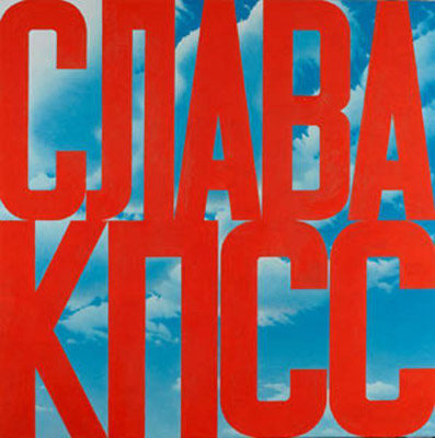 Картина «Слава КПСС» — на первый взгляд тривиальный агитплакат: на синем небе с легкими облаками все пространство закрывают огромные красные буквы «Слава КПСС», которые воспринимаются как удушающая тюремная решетка.