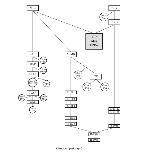 16.6. В графической форме взаимоотношение различных редакций представлено на стемме (см. с. 413).