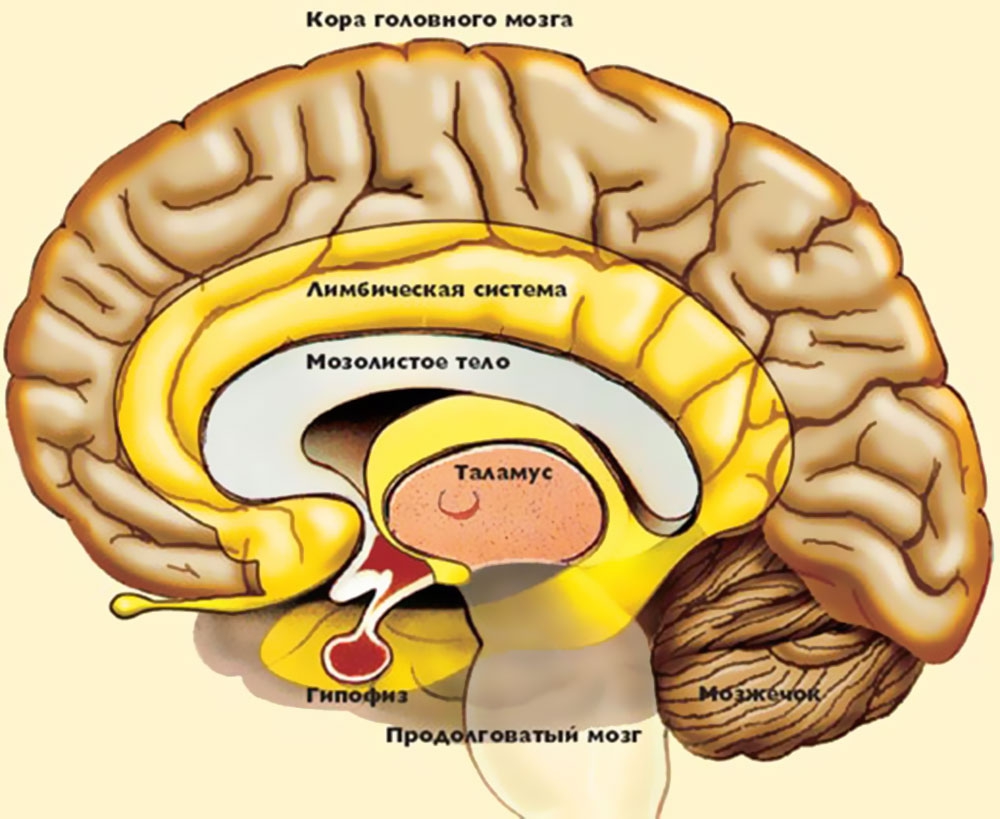 Обратите внимание на часть картинки, выделенную желтым цветом. Это лимбическая система. Она была открыта только в 1952 году, когда стали исследовать нейронные связи. Лимбическая система отвечает за чувства, эмоции и рефлексы. Содержимое лимбической системы формируется в основном в первые три года жизни ребенка, в возраст, в котором мы себя, как правило, не помним. И что интересно, информация туда «записывается» без критического осмысления. Так надо, и все. Приведу пример: жил-был мальчик Вася, однажды в 2 годика он идет с папой за ручку, папа достает сигареты, закуривает. Вася спрашивает: «Папа что ты делаешь?» - «Не видишь, курю?» - «А можно я тоже покурю?» - «Хм, нельзя, ты еще маленький!»
