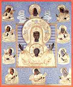 Новодворская икона Божией Матери. Козельщанская икона Божией Матери. Курская-коренная икона Божией Матери, именуемая "Знамение". Псково-Покровская икона Божией Матери, именуемая «Умиление»... Ярославская-Смоленская икона Божией Матери... Калужская икона Божией Матери. Казанская икона Божией Матери. Икона Божией Матери, именуемая «Знамение»... Донская икона Божией Матери. Владимирская икона Божией Матери. Холмская икона Божией Матери