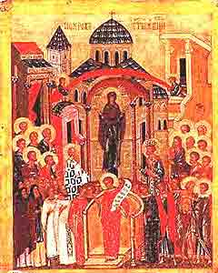 Великое наследие иконы нередко становится предметом превозношения православных над другими христианскими традициями, чей исторический опыт не сохранил в чистоте или отверг икону как элемент культовой практики. Однако зачастую современный православный человек свою апологию иконы не простирает дальше слепой защиты традиции и расплывчатых рассуждений о красоте божественного мира, тем самым оказываясь несостоятельным наследником принадлежащего ему богатства. К тому же низкого художественного качества иконная продукция, заполонившая наши храмы, мало напоминает то, что называется иконой в святоотеческой традиции. Все это свидетельствует о глубоком забвении иконы и ее подлинной ценности. Речь идет не столько об эстетических принципах, они, как известно, изменялись в течение веков и зависели от региональных и национальных традиций, сколько о смысле иконы, поскольку образ является одним из ключевых понятий православного мировоззрения. Ведь не случайно победа иконопочитателей над иконоборцами, окончательно утвержденная в 843 году, вошла в историю как праздник Торжества Православия. Концепция иконопочитания стала своего рода апогеем догматического творчества святых отцов. Этим была поставлена точка в догматических спорах, сотрясавших Церковь с IV по IX век.