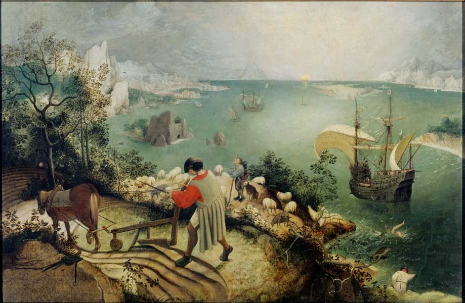 И, пожалуй, первая такая работа, которой, кстати, нет на этой венской выставке, это «Падение Икара». Она висит в Брюсселе, в Королевской Академии искусств. Брюссель не отправил её на выставку, потому что это главная жемчужина брюссельской коллекции, и многие посетители приходят в этот музей, чтобы посмотреть именно на Икара.