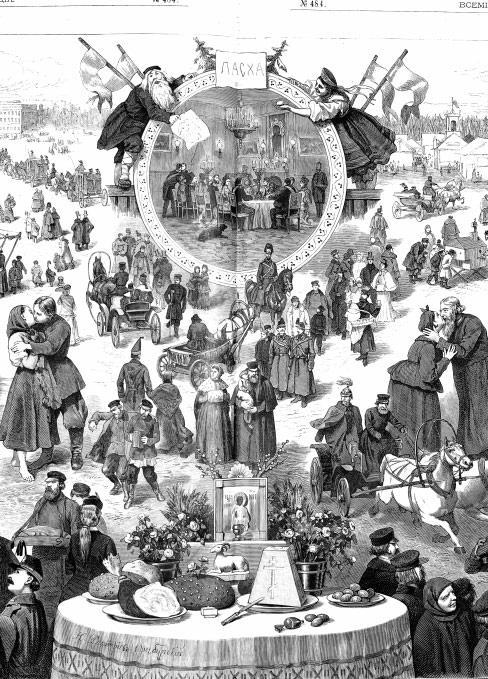 Ярче запылали плошки около церквей и домов… Усилилось движение на улицах. В церквах началась Светлая заутреня.