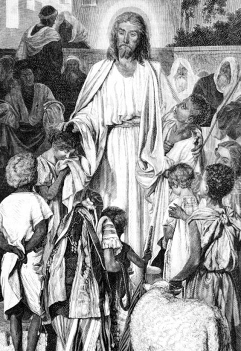 Благословивши природу, Воскресший обратился к людям. Первыми вышли навстречу к нему люди плачущие, согбенные под игом работы и загубленные нуждою. И когда Он сказал им: «Мир вам!» — то они наполнили воздух рыданиями и пали ниц, молчаливо прося об избавлении.