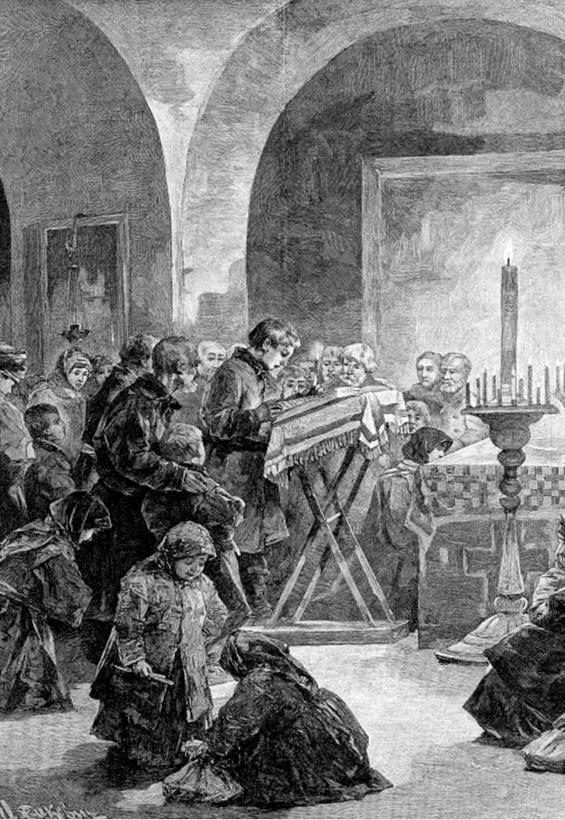Все предстоявшие с ужасом и отвращением отвернулись от представившегося зрелища; взор Воскресшего воспылал гневом.