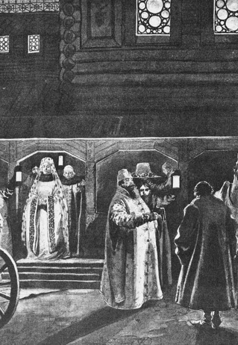 — Неладно, — говорит, — встречаете вы моего братца: вам бы гудочников звать сюда, гусляров, песни бы заиграть, то было бы ладно: дурак он у меня, братец-то мой воевода, любит бесовское гуденье…