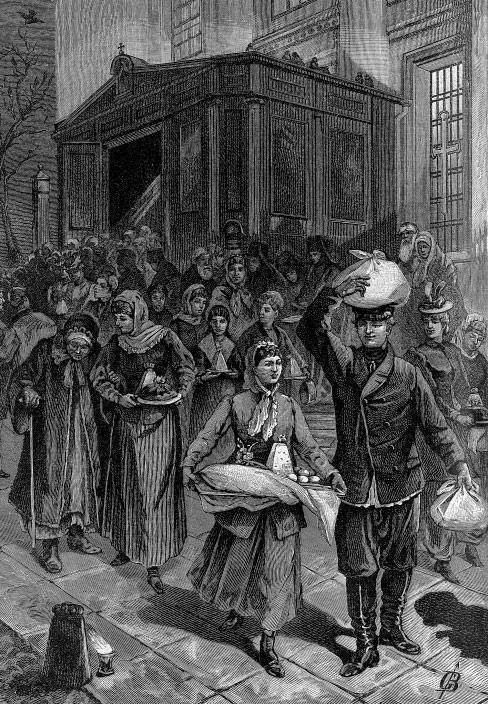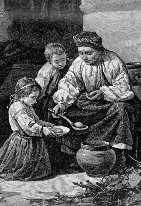 Проезжим мужикам из голодающей губернии некуда было пойти приготовиться к празднику. Они сидели в темноте, на конце длинной платформы.