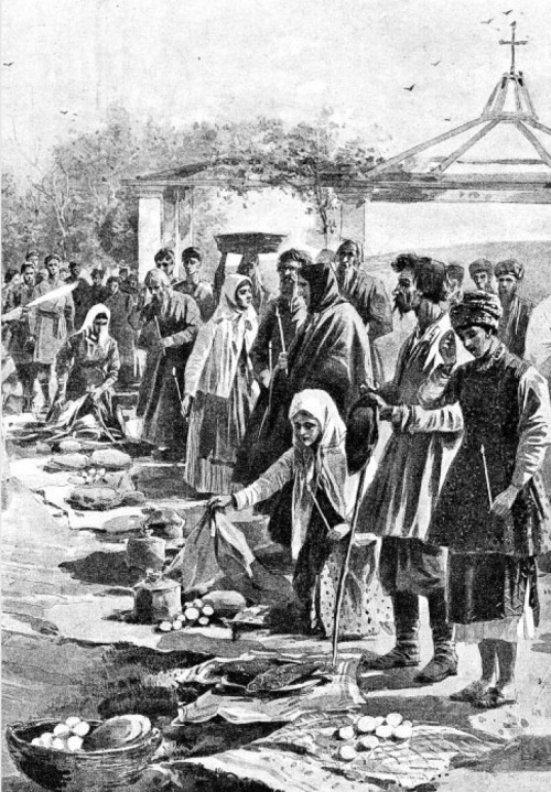 После ранней обедни пошли святить пасхи, и чего только не было наставлено вокруг церкви!