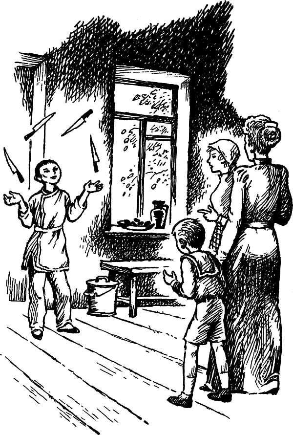 Я высыпал сухари в угол, где в пыли и в паутине стояли какие-то битые тарелки с водой. Петух подошёл, клюнул сухарь и, метнув на меня не то гневный, не то презрительный взгляд, с новой энергией забегал по курятнику, выговаривая что-то своим дамам. Выйдя во двор, я подтянул ремешки ранца и поспешил к воротам — догонять Елену Ивановну и Васю.