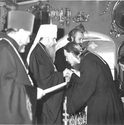 Митрополит Таллинский и Эстонский, ныне Святейший Патриарх Московский и всея Руси Алексий вручает диплом об окончании Московской Духовной Академии, 1982 год
